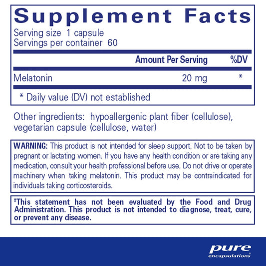 Melatonin 20 mg – 60 Veg Capsules • High-Purity Cellular & Immune Support (Not for Sleep Use)
