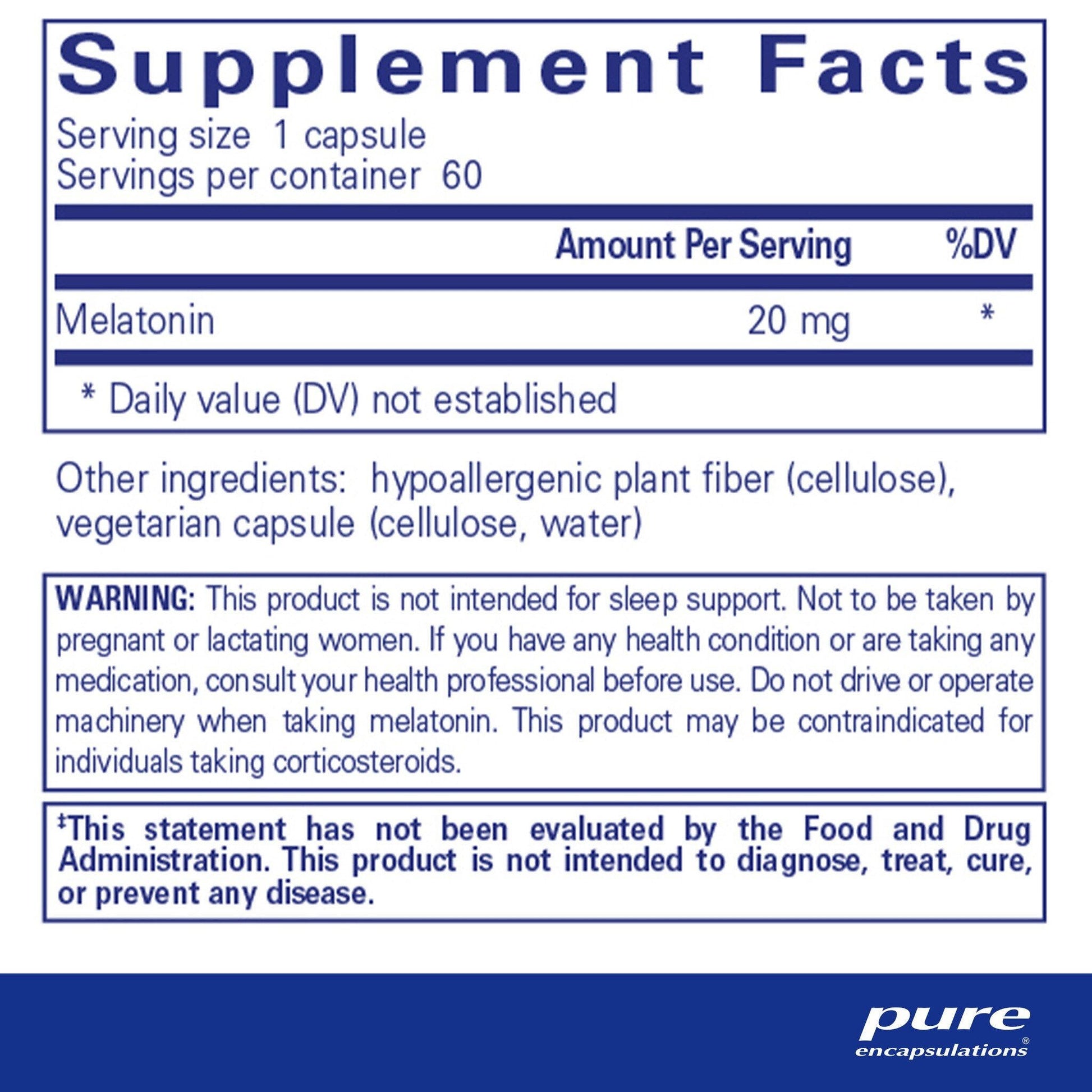 Elevate your wellness routine with Melatonin 20 mg, a high-purity (99.5%) vegan supplement crafted by Pure Encapsulations to support cellular health, immune function, and tissue protection—without targeting sleep regulation.* Designed for individuals seeking antioxidant and endocrine support beyond the typical sleep benefits, this potent formulation is rooted in clinical science and rigorous purity standards.