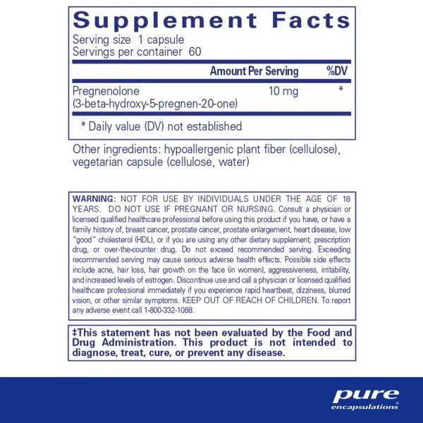 Pregnenolone 10 mg – Mood & Memory Support via Hormone Precursor (60 Capsules)